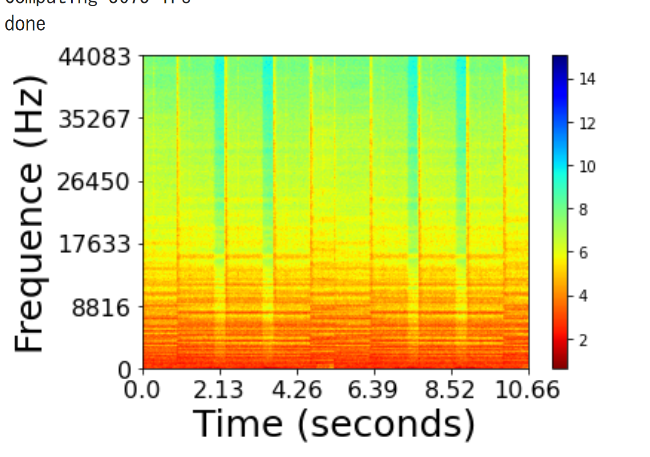 次で公開されている音のデータ(.wav 形式ファイル)について、スペクトログラムを作成
