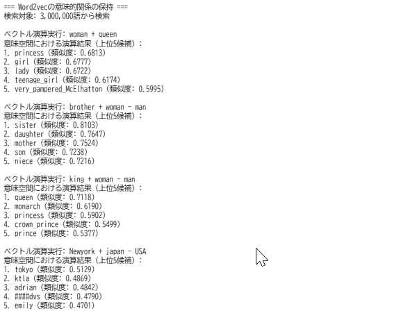 - 単語の特徴ベクトルと類似検索(Word2vec を使用)の Colab プログラムによる実験・研究スキルの基礎