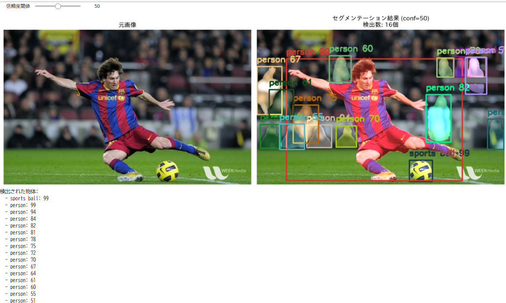 【概要】 Google Colabで動く物体検出AI(PixelLib)。人・車・動物など80種類を検出。画像をアップロード後、スライダーで信頼度閾値を調整、リアルタイムで検出結果を確認。誤検出と見逃しのトレードオフを理解。