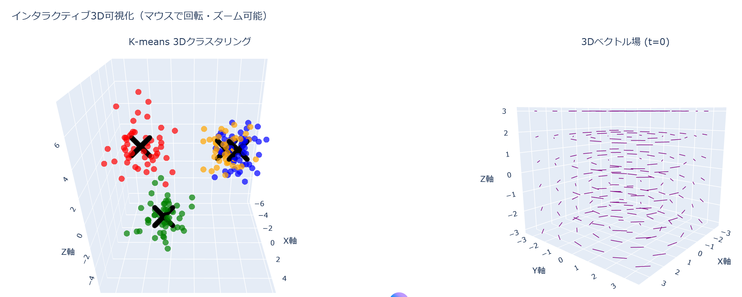 - 3次元データクラスタリング、3次元ベクトル場アニメーション表示プログラムによる実験・研究スキルの基礎