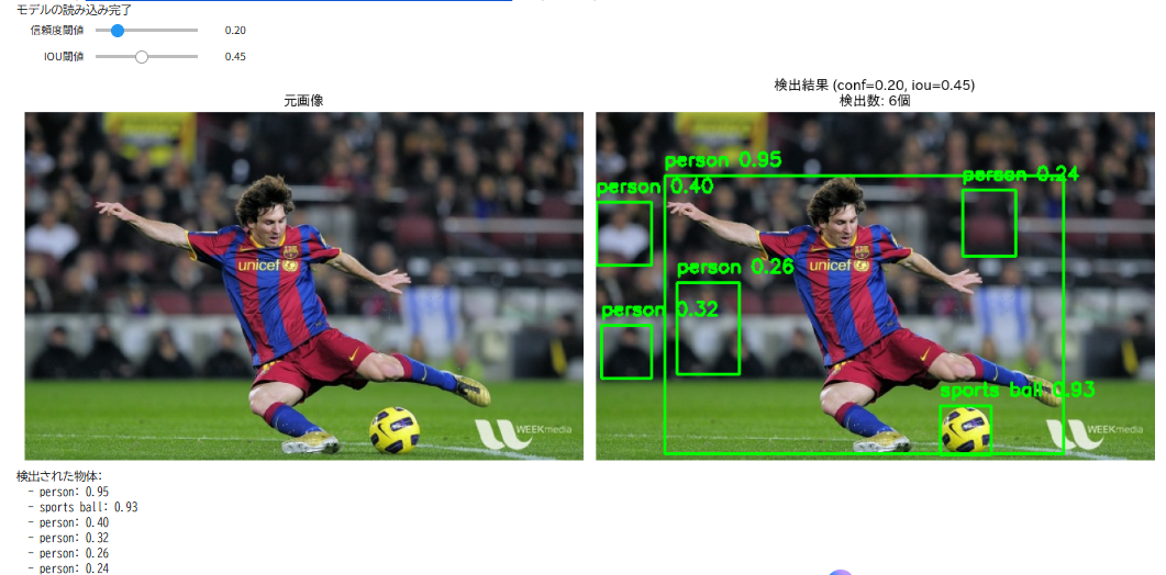 【概要】Google Colabで動く物体検出AI(YOLOv10)。人・車・動物など80種類を検出。画像をアップロード後、スライダーで信頼度閾値とIOU閾値を調整、リアルタイムで検出結果を確認。誤検出と見逃しのトレードオフを理解。