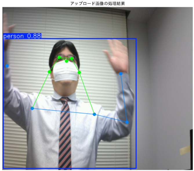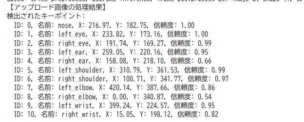 【概要】YOLO11-poseモデルを用いて画像から人体の17個のキーポイントを検出する姿勢推定プログラムである。Google Colaboratory上で動作し、公式サンプル画像での自動デモとユーザがアップロードした画像の処理が可能である。検出結果は座標、信頼度とともに視覚化され、スポーツ分析、フィットネス、医療分野での姿勢評価等に活用できる。