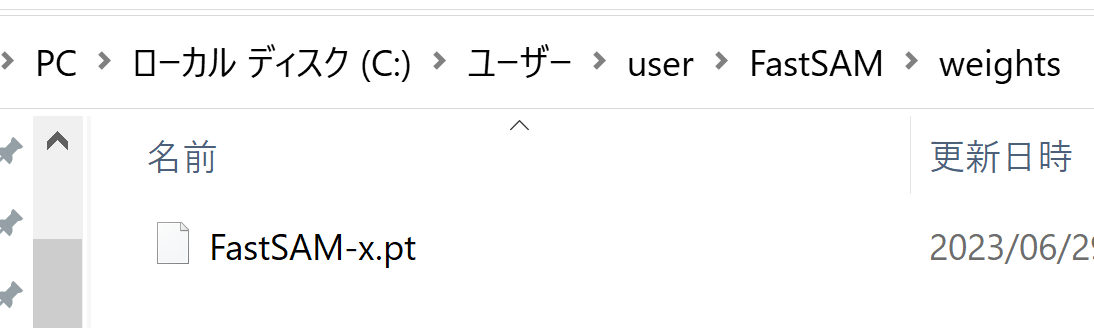 https://github.com/CASIA-IVA-Lab/FastSAM#model-checkpoints から FastSAM-x.pt を ダウンロードし,weight の下に置く
