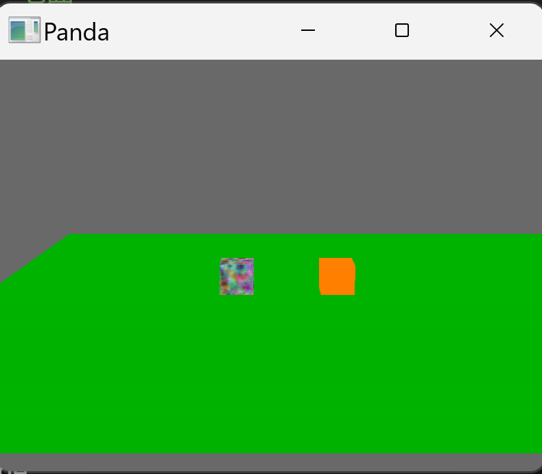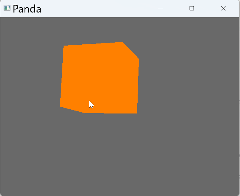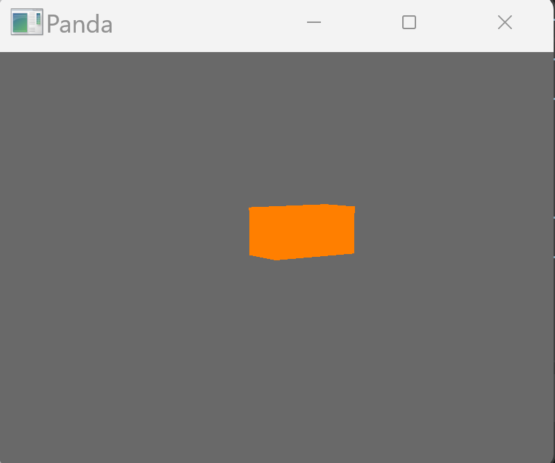 Panda3Dで単色のオレンジ色の立方体を回転させるプログラム。デルタ時間を使用してフレームレート非依存の回転を実現。